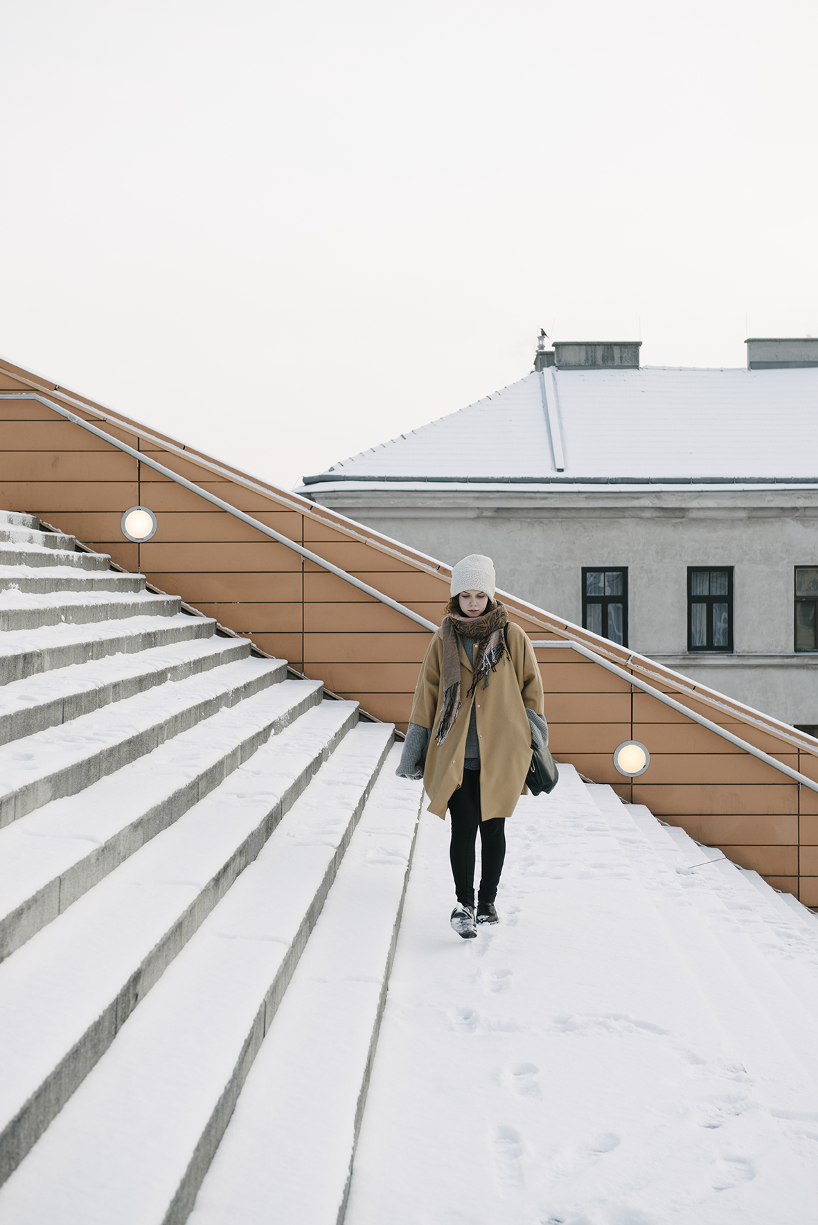 Einer von Victorias Lieblingsorten in Wien ist die Stiege von der Hauptbücherei. Ein Ort, an dem sie schon sehr viel Zeit verbracht hat und kreativ arbeiten konnte.
